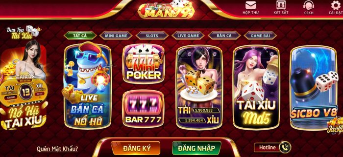 Man79 cung cấp một hệ sinh thái trò chơi nohu giải trí đa dạng, đáp ứng sở thích của mọi người chơi. Những tựa game bài kinh điển, các slot game sôi động với phần thưởng khổng lồ hay trò chơi live casino chân thực đều được cập nhật liên tục. Không chỉ chơi để giải trí, người chơi còn có cơ hội trúng những giải thưởng lớn chỉ sau vài ván cược.